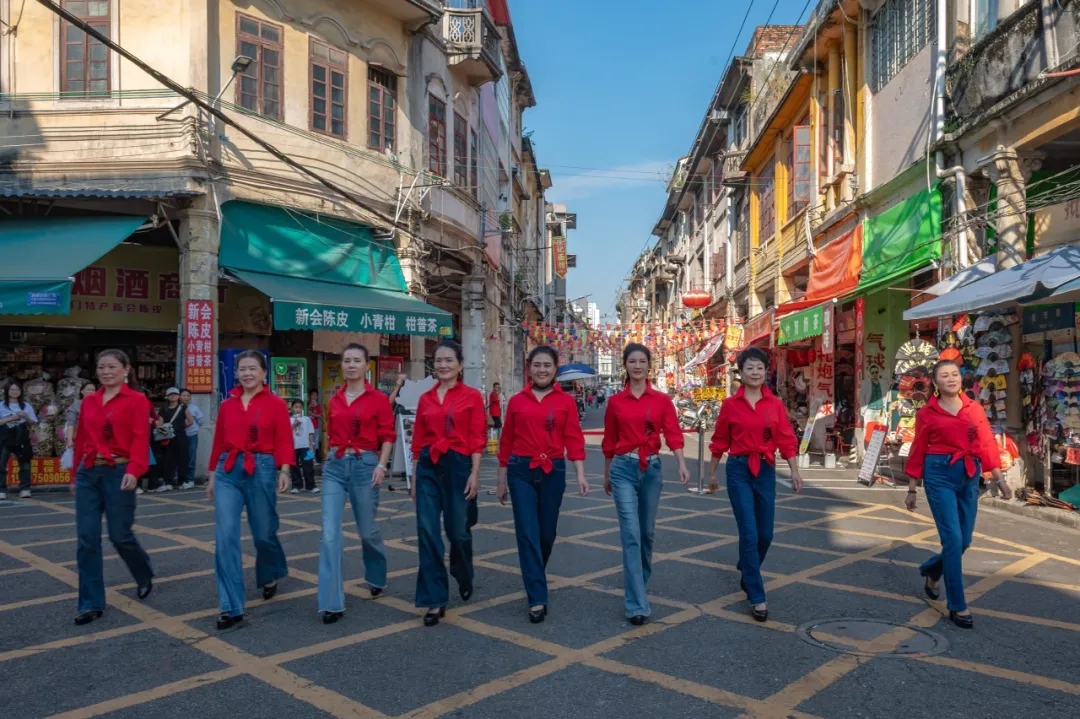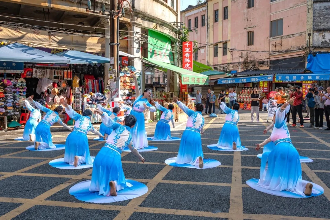 本场活动巧妙融合了“我们的节日·重阳”的温情与“全运来江门,粤游粤精彩”的活力。演出让艺术从舞台深入街巷,不仅为市民游客献上文化大餐,更以舞为媒,激活了历史街区的当代生命力,展现了江门文明健康、昂扬奋进的时代风采!