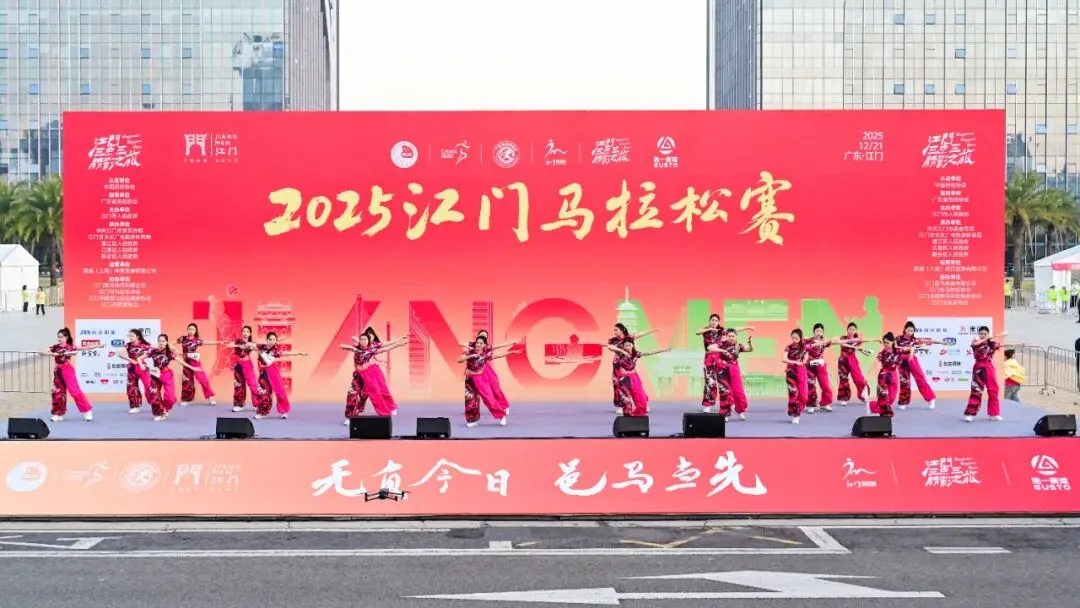 冬至暖阳,热情如潮。12月21日上午,“无负今日 邑马当先”2025江门马拉松赛在万众瞩目中激情启幕。来自五湖四海的1.5万名跑者齐聚侨乡,以奔跑致敬城市,用脚步丈量热土。作为赛事的重要文化篇章,开幕式演出由江门市文化馆精心策划承办,以一场融合传统与现代、兼具侨韵与活力的艺术盛宴,点燃了整座城市的奔跑激情。
