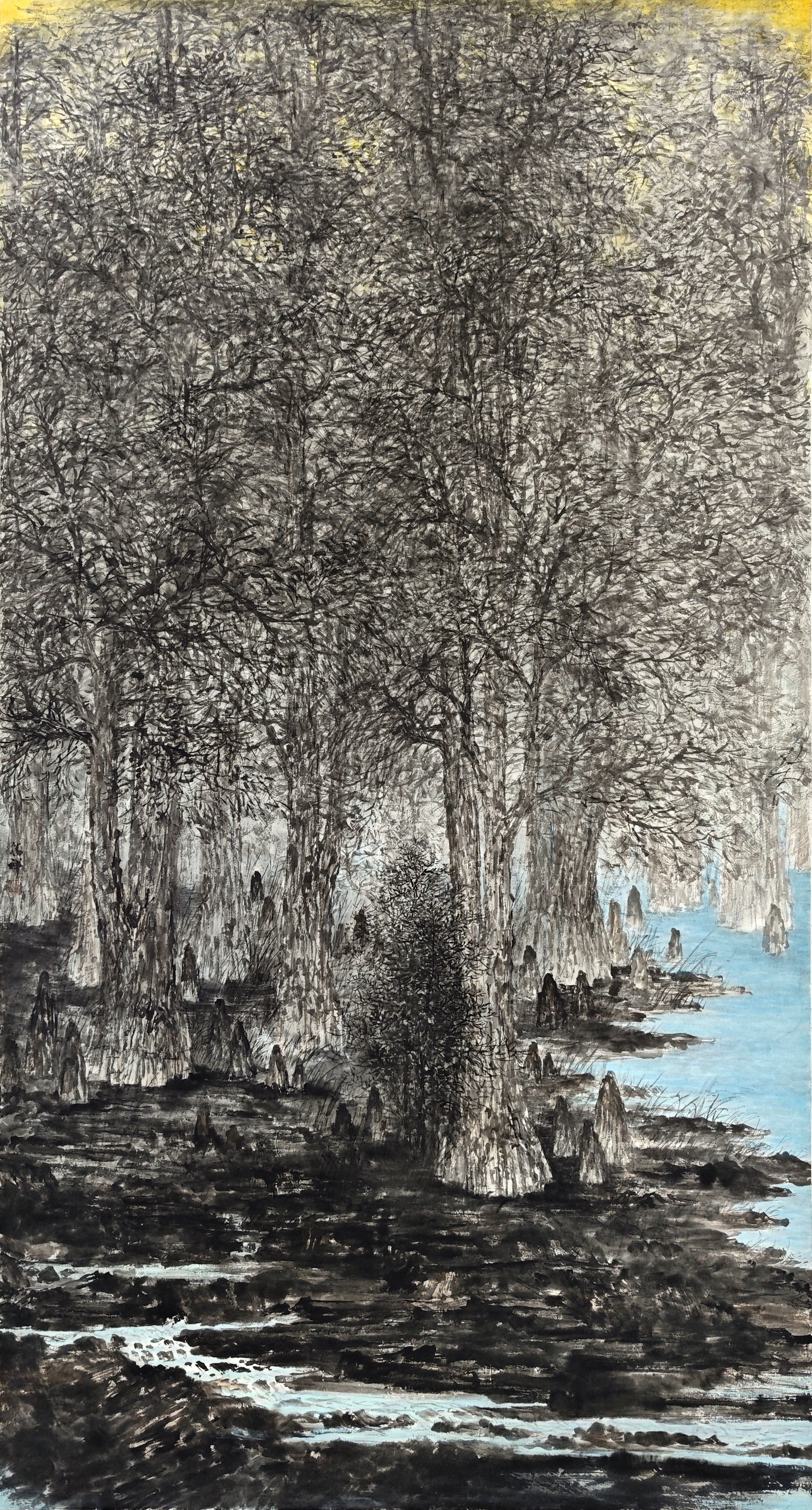 国画《龙湾晨晓》180X97