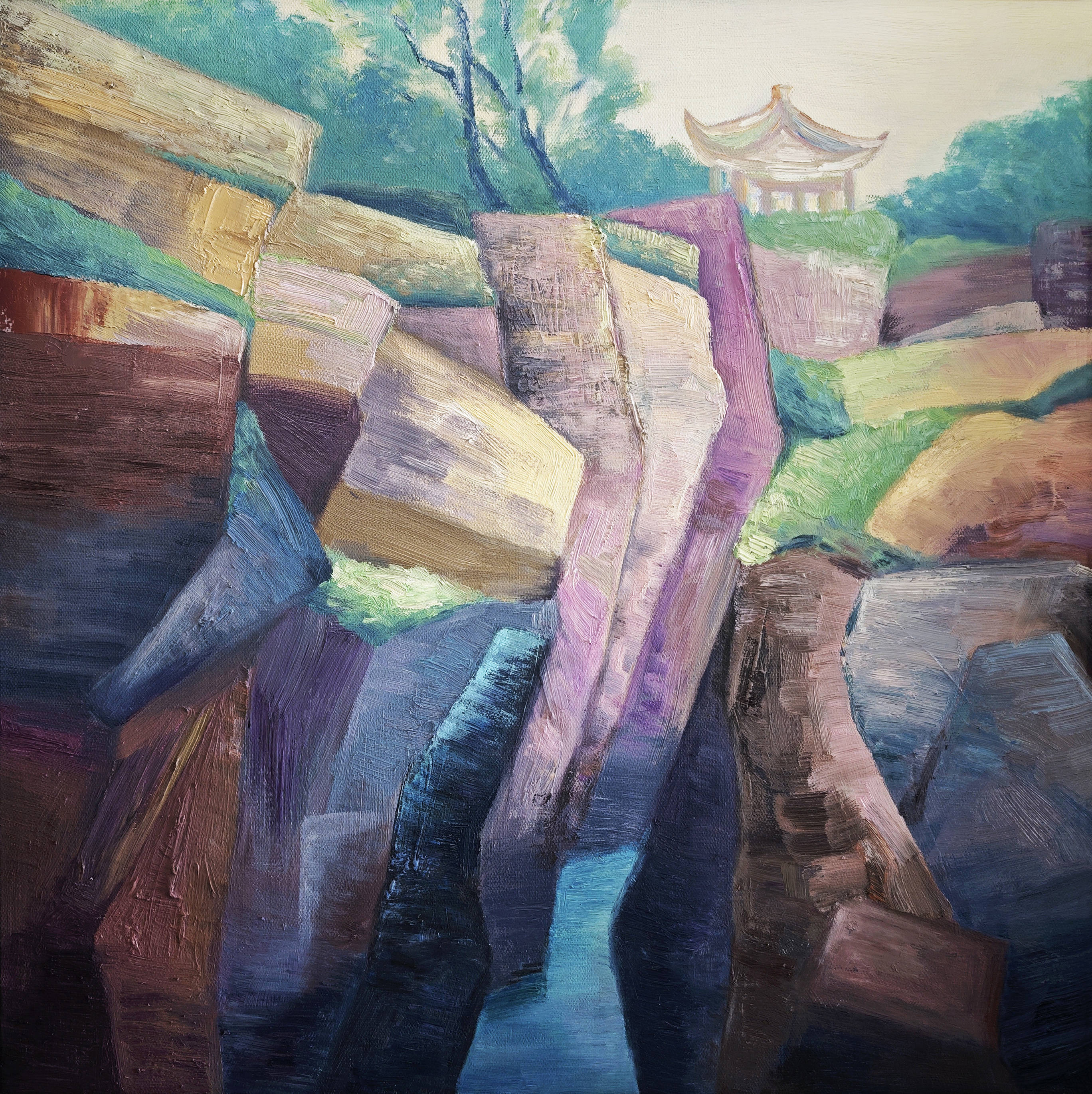 油画《丹崖石韵》 60x60
