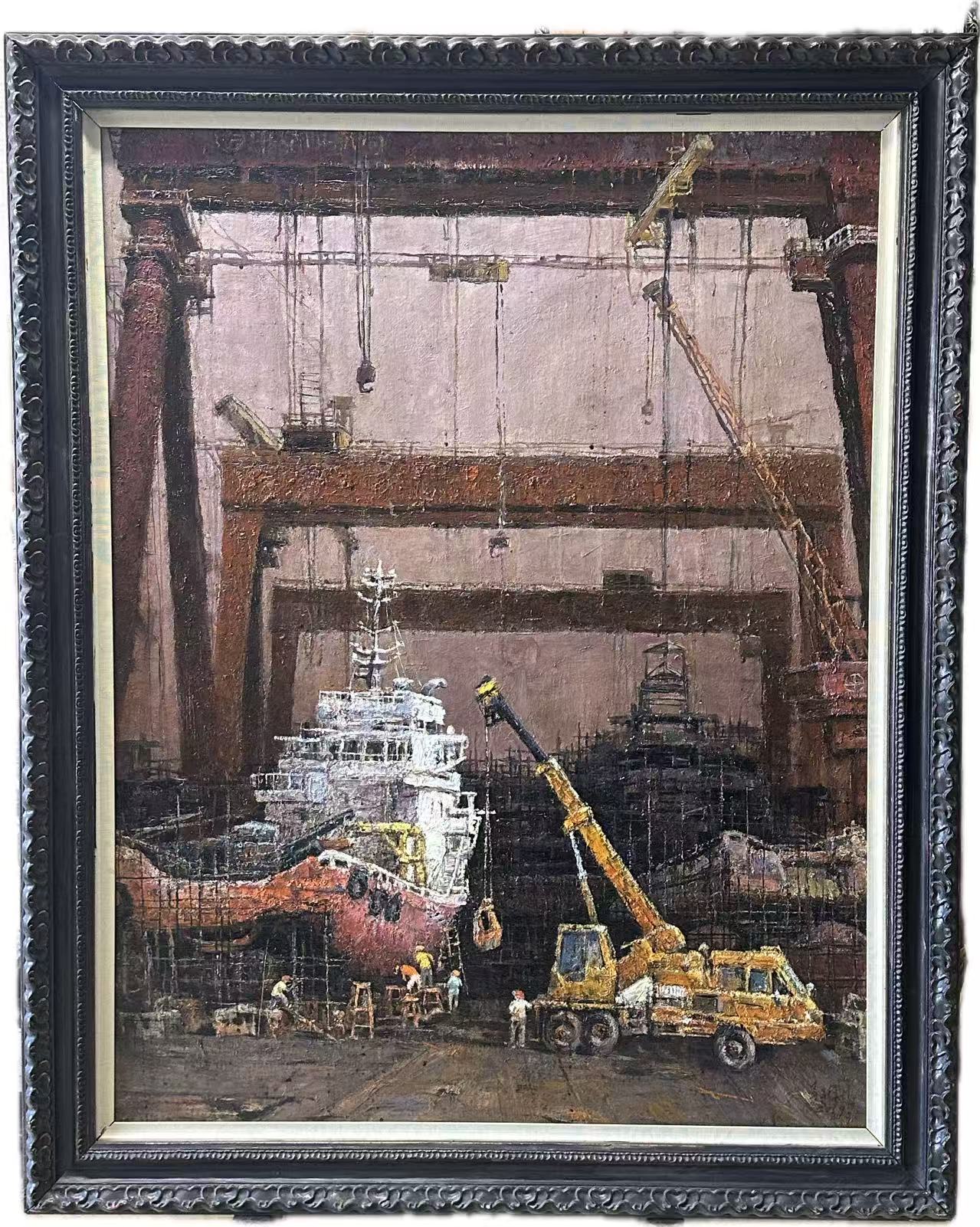 油画《修船厂之二》130x100