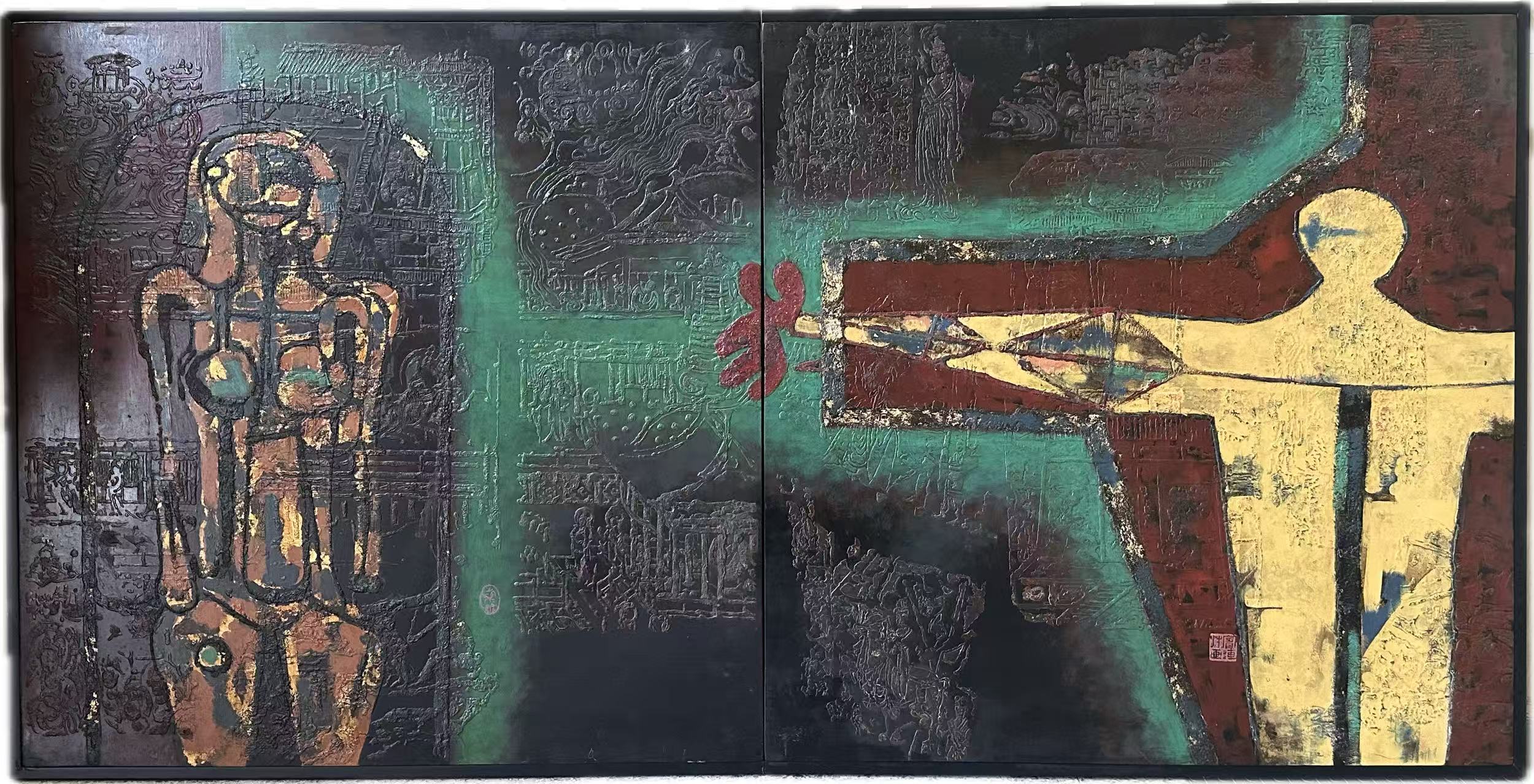 漆画《相遇》100x200