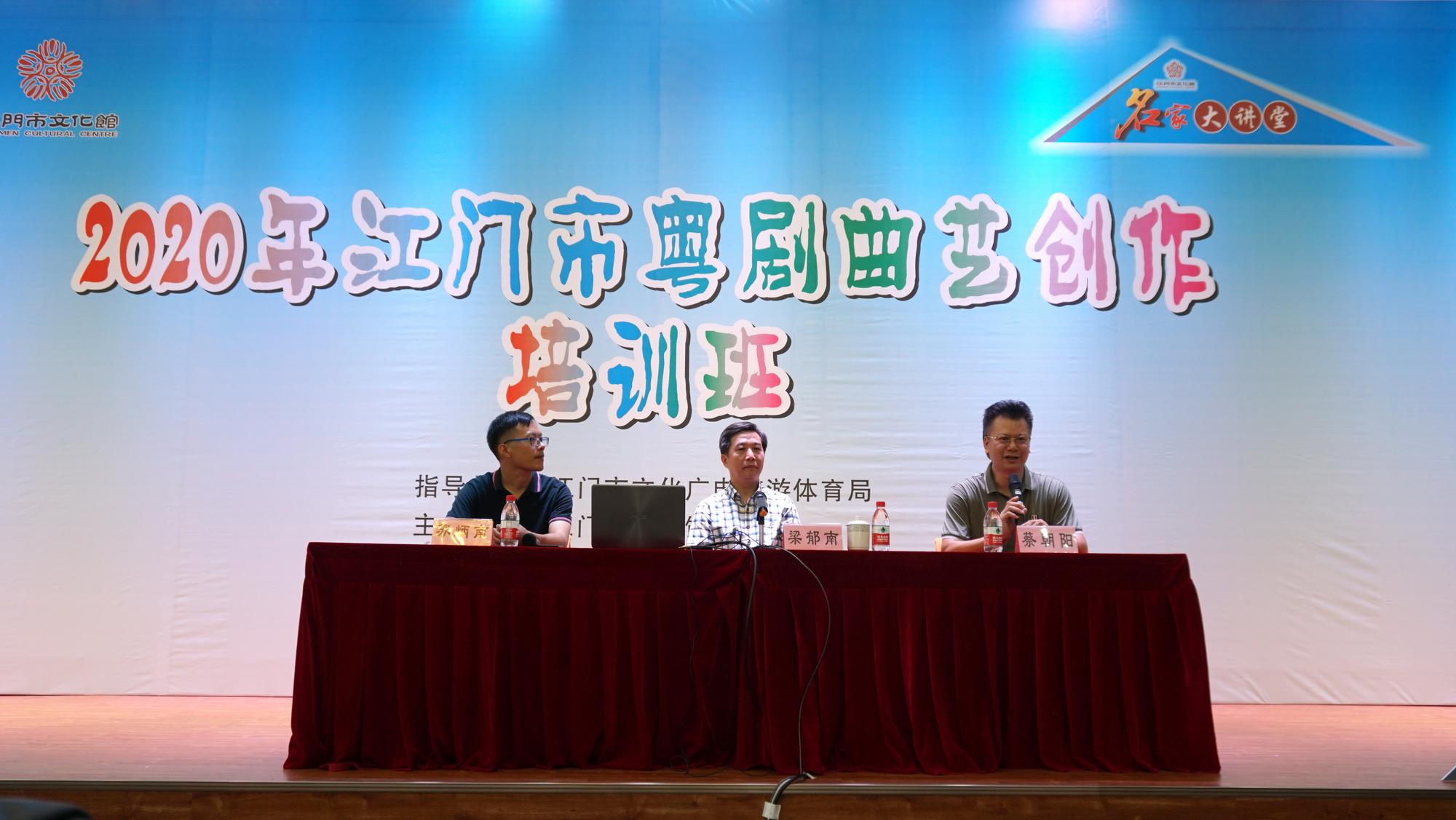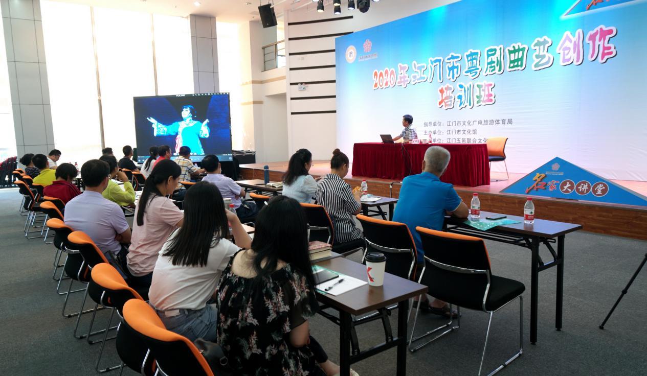 为进一步提升江门本土粤剧曲艺创作水平,培养高精尖的曲艺创作人才,激发粤剧曲艺艺术在群众文化生活中的新活力,7月25日,“名家大讲堂·2020年江门市粤剧曲艺创作培训班”在市文化馆二楼多功能厅开课。原广州文学艺术创作研究院副院长、国家一级编剧、享受国务院特殊津贴专家梁郁南老师莅临授课,江门市文化馆馆长、研究馆员蔡朝阳出席开班仪式。来自江门三区四市的粤剧曲艺骨干和具有一定粤剧曲艺创作基础的市民群众参加了培训。
