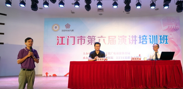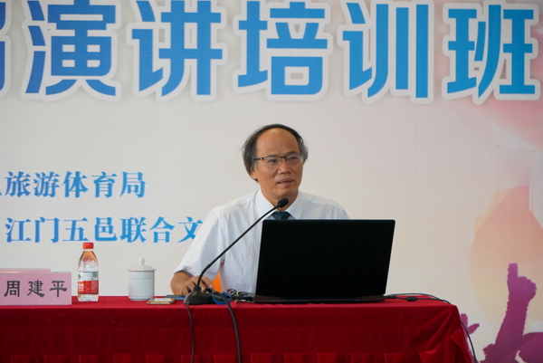 “用故事吸引听众的兴趣,用论据传播你的观点,用数字打动你的听众……”9月21日,在江门市文化馆二楼多功能厅举办的“江门市第六届演讲培训班”现场,特邀授课老师周建平博士以“如何撰写演讲稿、如何讲好故事”为课题,为来自江门三区四市、湛江等地的60多名学员上了一堂兼具实用性和指导性的培训课。