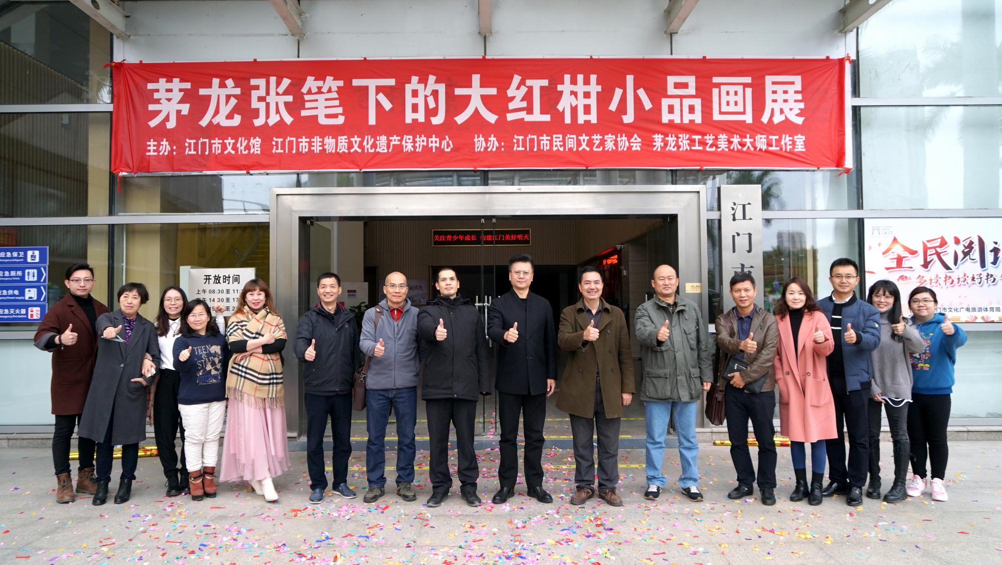 12月16日下午,由江门市文化馆、江门市非物质文化遗产保护中心主办,江门市民间文艺家协会、茅龙张工艺美术大师工作室协办的“茅龙张笔下的大红柑小品画展”在市文化馆一楼展厅开幕。