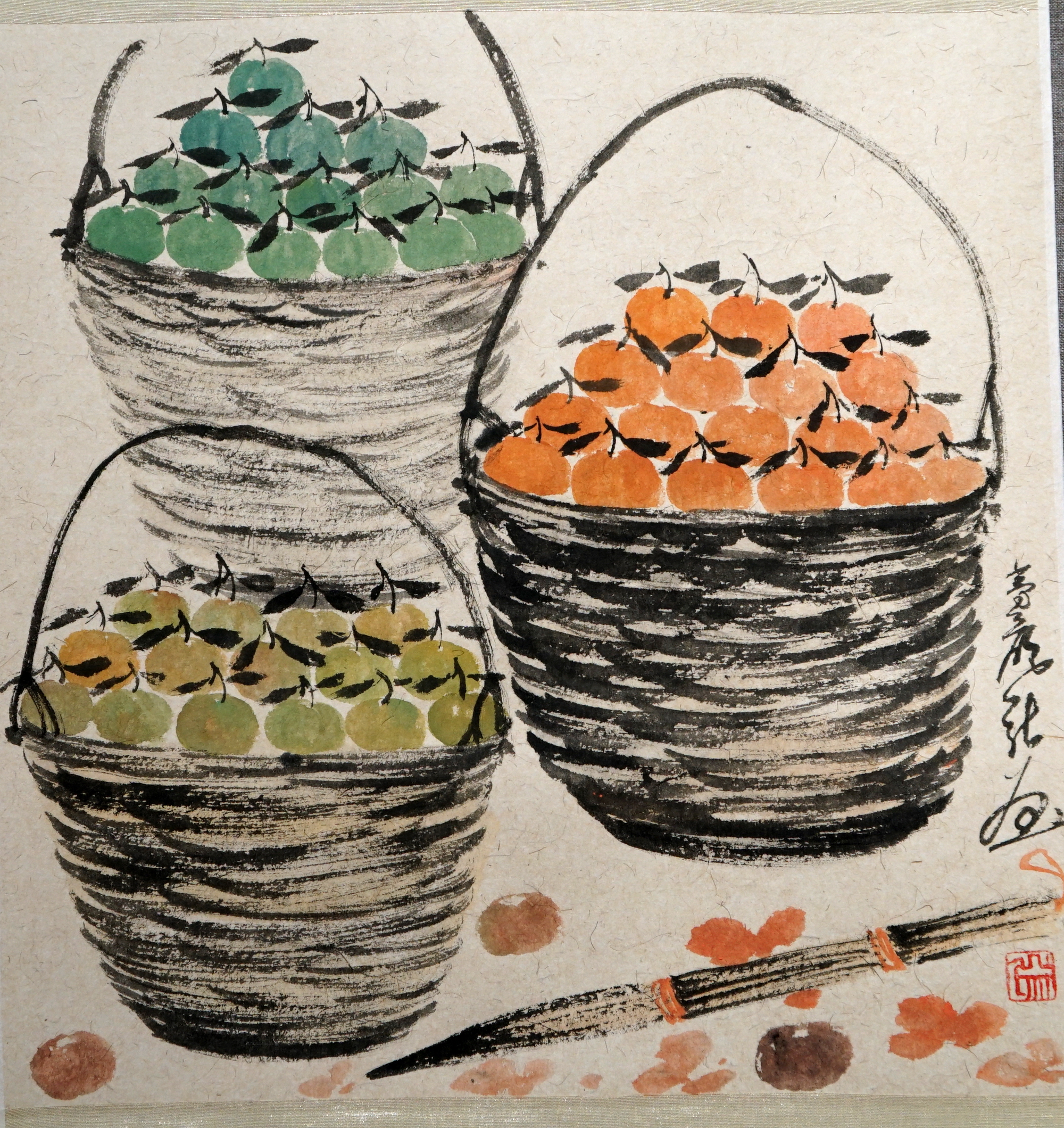此次展览展出了白沙茅龙笔传承人张瑞亨创作的180幅“大红柑”主题小品画。作品以小立轴、册页、扇面等形式呈现,尺幅小、内容简,着墨精炼却灵妙多姿、意趣盎然,展现了作者深厚的笔墨功底和艺术修养。此外,这些洋溢着茅龙神韵的画作小中见大,无声讲述着柑农、大红柑和陈皮的故事,以创新的传承形式为非遗文化注入了新活力,让观者在品赏之际深切感受到侨乡优秀传统文化魅力。